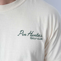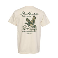 Chasing birdies with the Pin Hunter’s Golf Club Tee. Featuring a bold, vintage-inspired graphic of a flying duck over a golf green, this shirt blends the spirit of the hunt with the game you love. Printed in deep green on a soft, cream-colored tee, it’s perfect for the range or casual weekends.